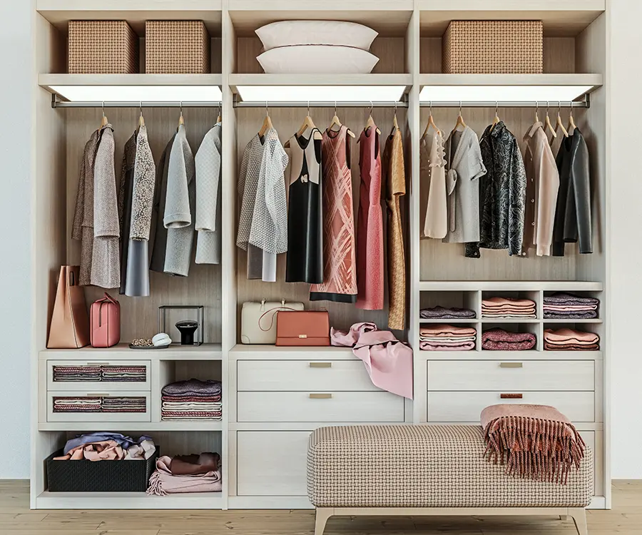 Small space? Big potential. Our reach-in closet solutions create order in compact areas with smart shelving, hanging rods, and storage accessories that make the most of every square inch.